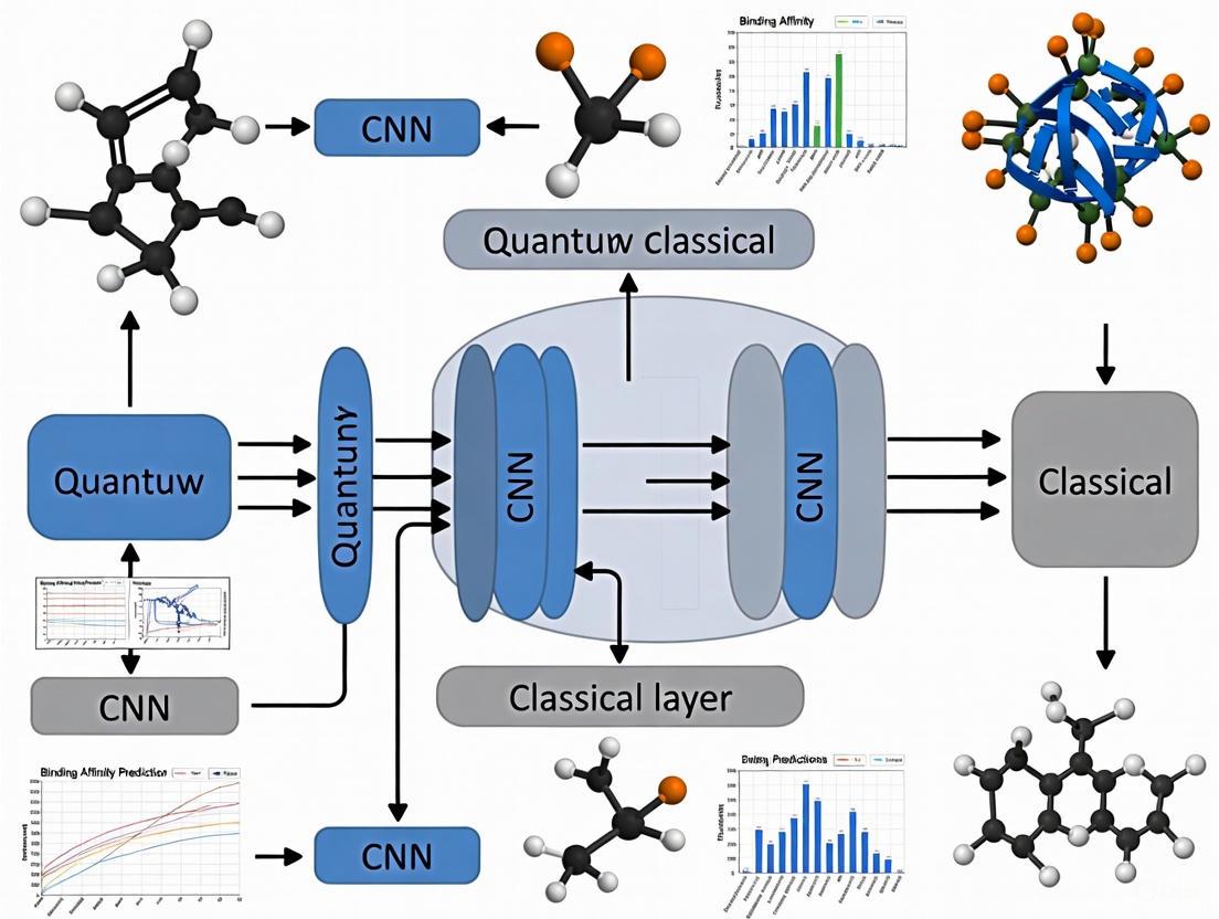 Figure 2: Hybrid quantum-classical CNN workflow for binding affinity prediction